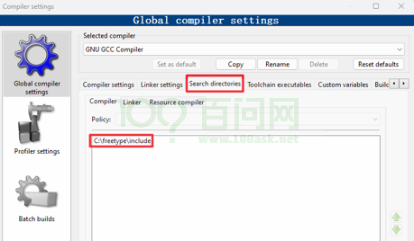 在下图所示的位置中添加: C:\freetype\include