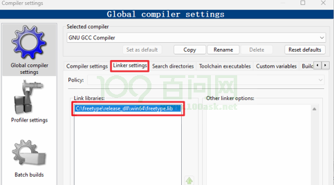在下图所示的位置中添加: C:\freetype\release_dll\win64\freetype.lib