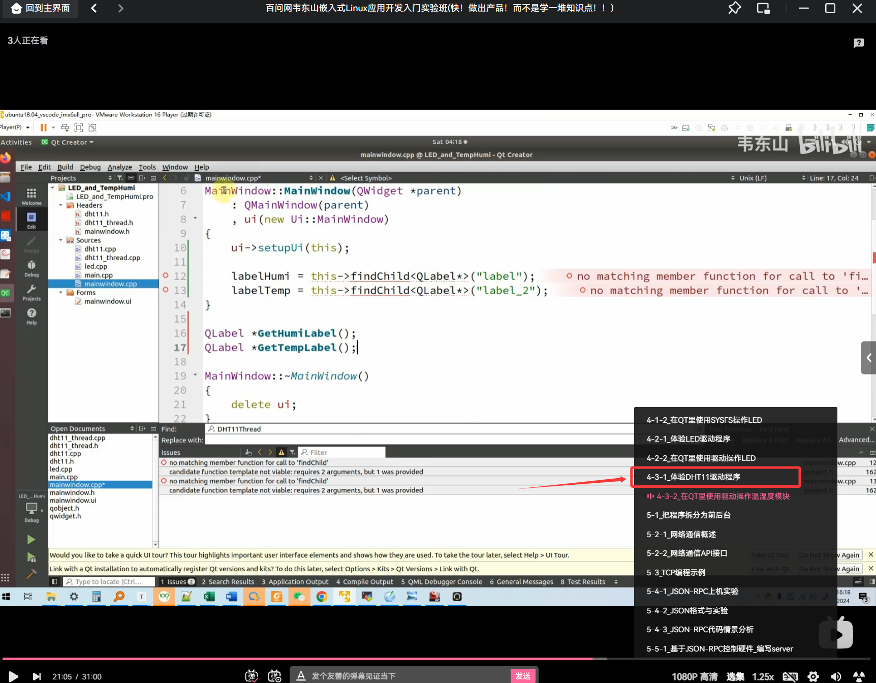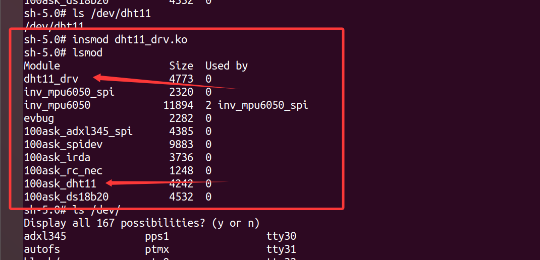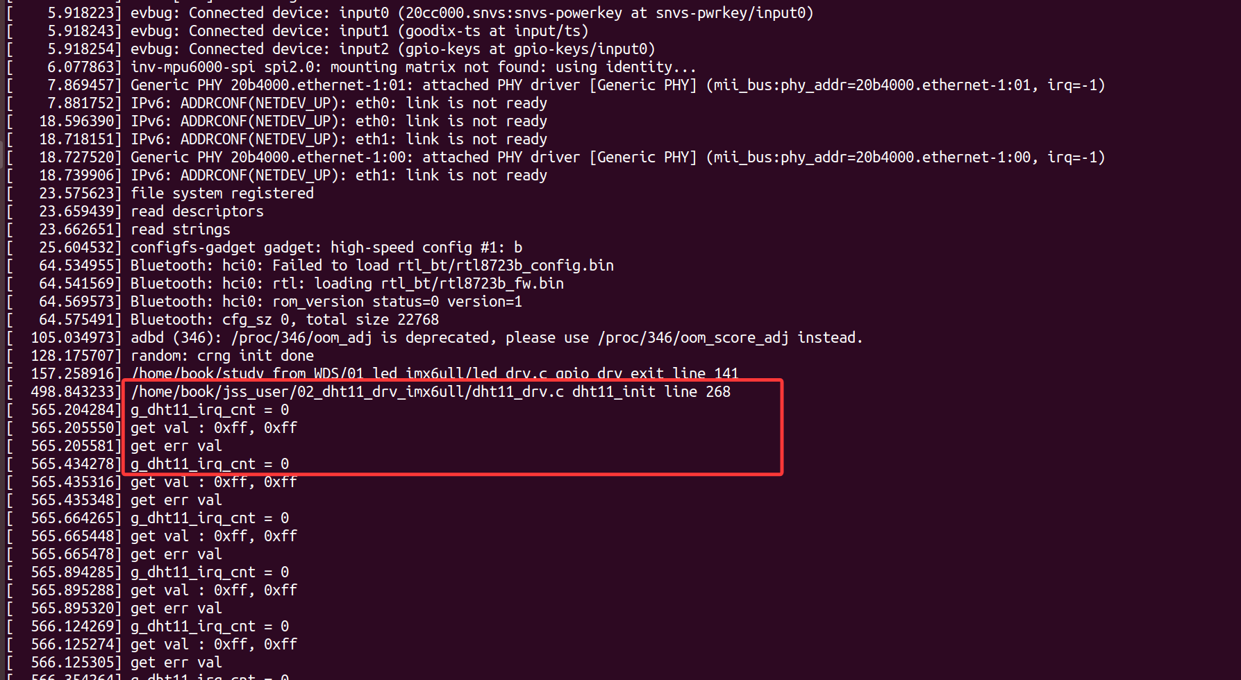 我是用的镜像根据文档《嵌入式Linux应用开发实验班(快速入门)_v1.1》的<3.1.2 编译支持 QT 的系统>章节 编译,是不是默认的程序占用的驱动 导致dht11_drv驱动起不来,但是是哪个程序判断不了