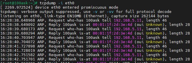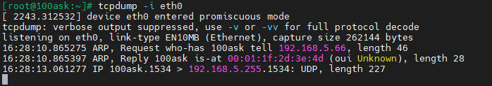 通过开发板开启抓包 然后ubuntu 和 windows都ping开发板 可以看到开发板能收到包 也已经回复 但是windows 和 ubuntu均无反应